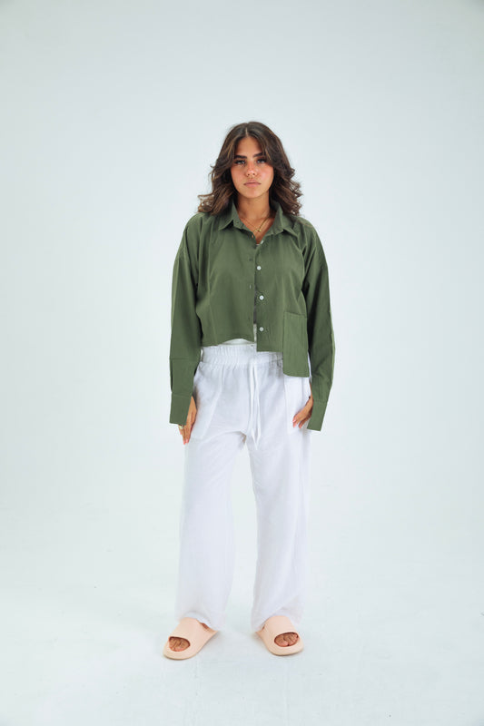 Sold outOLIVE GREEN CROP SHIRT